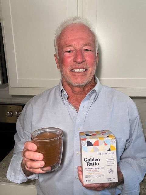 “I created Golden Ratio because I love coffee, but coffee didn't love me back. It was too acidic and the “burnt & bitter” taste of dark roast and medium dark roast didn't jive with my tastebuds. When I discovered the "the lighter sides of coffee," known as the "gold roast" beginning to pop up in niche coffee circles around the US, my problem was solved. However, there was nothing on the market that tasted delicious and was simple to prep at home. So, I created it.”