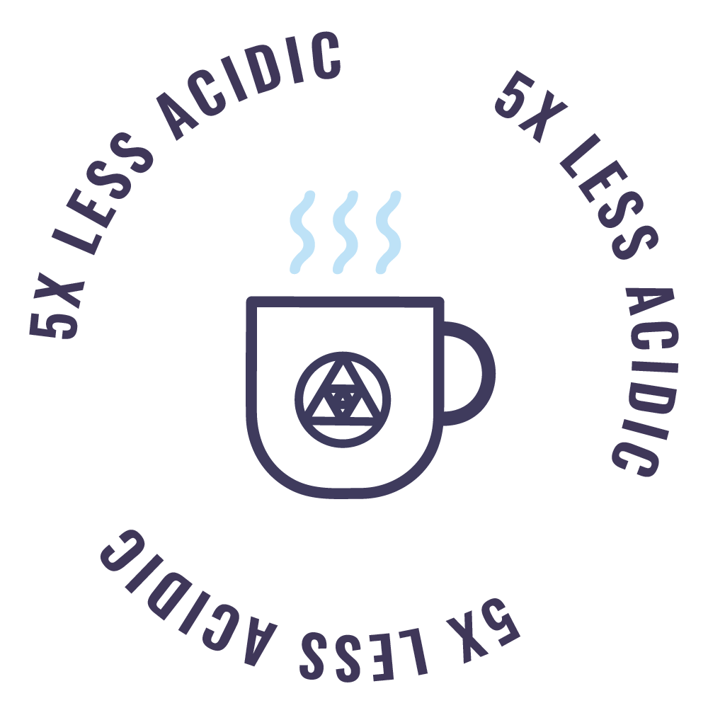 Our gold roasting process creates a low acid coffee that has almost no quinic acid, the component of coffee in dark roasts that causes an astringent feeling in your stomach.